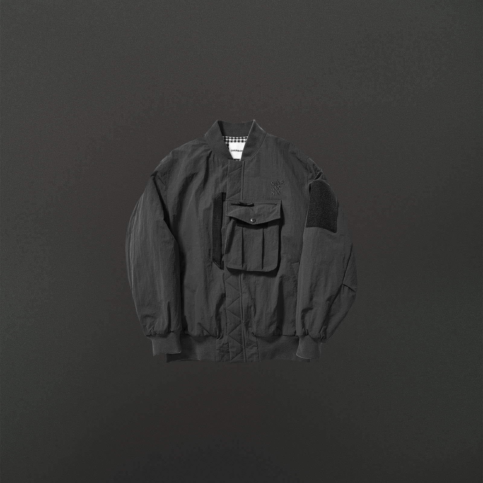 フロント上部の3つのドットボタンによりファスナー全開でも風のバタつきを抑え、着こなしにも変化を加えることができる。