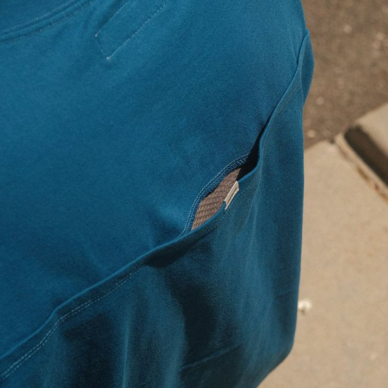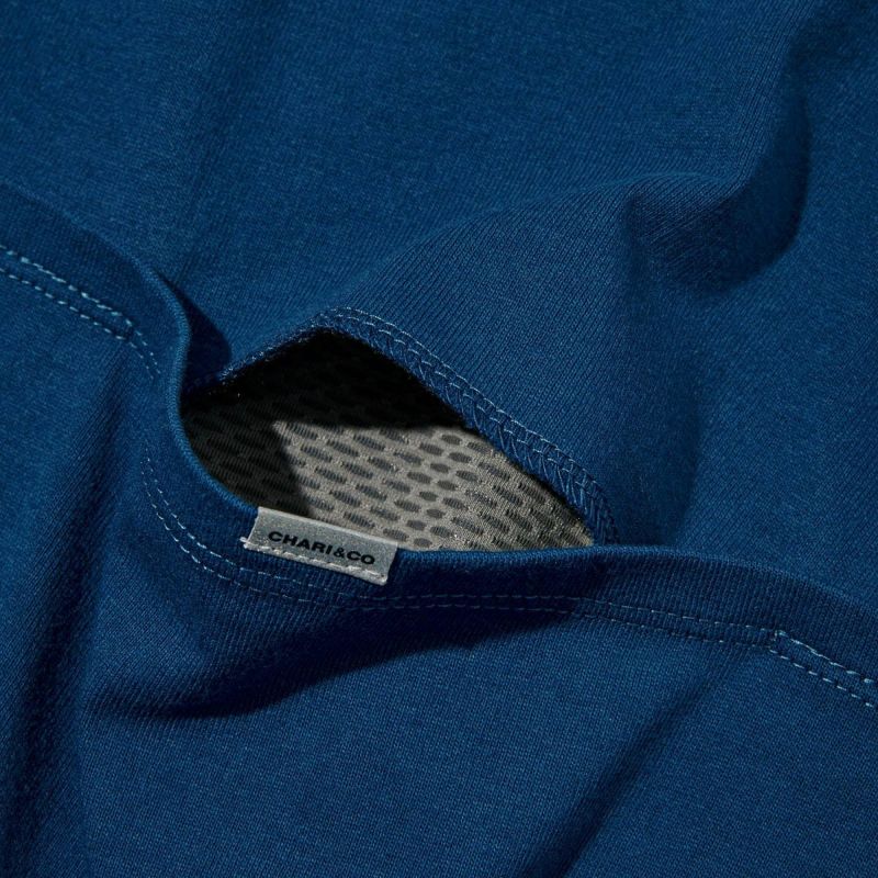 動き出したら熱くなる身体の調整を背中のベンチレーションが対応。熱気は上方向に行くので上向に隙間を作った。自転車に乗っている時や空調の効いた環境では上から服の内部に空気が流れ快適性を保つ。雨を考慮して下向きのベンチレーションの服が多い中、雨の日は自転車に乗らない外出しないのが賢い CHARI&CO のファンであると考え、合理性の観点からも下向きのベンチレーションへの疑問に終止符を打つ。2本のストライプがどこか懐かしさを覚えるスポーツライクなデザインで普段着からカジュアルスポーツのシーンまであなたのパートナーになってくれる一着だ。