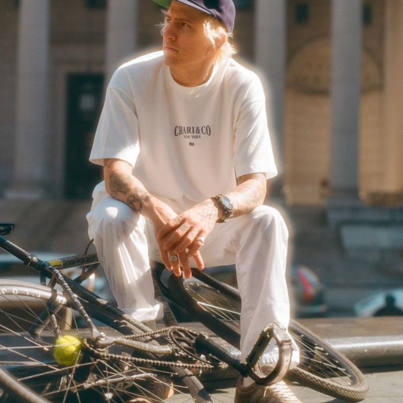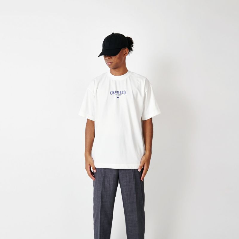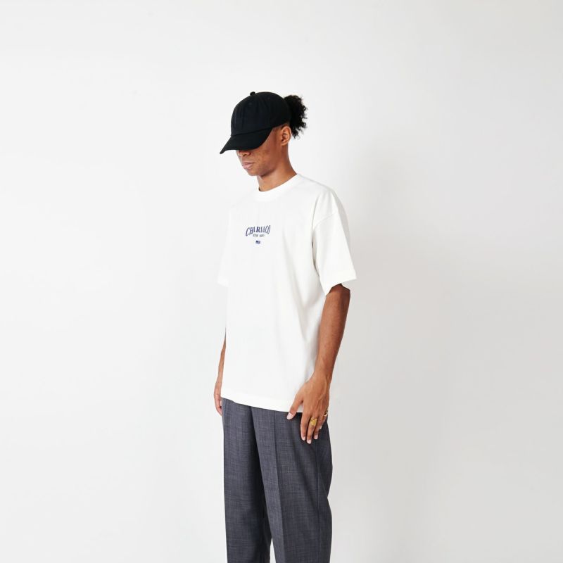 フロントのアリーナロゴはプリントと刺繍のコンビネーションにより表情豊かな仕上がりとなった。アクティブに着用しても肌と生地の間に隙間が出来る“肌離れ”を考えたブランドオリジナルの生地 “COOLER THAN EVER TECH” を採用。表はコットン、裏はポリでテックなCHARI&COらしい一着。身幅をしっかり確保し着丈を少し短くすることで16年前のブランドスタート時からあったストリート感ある野暮ったさを一新し、現在のモダンさを優先。長期的な着用を想定して開発したオリジナルカスタムボディ。