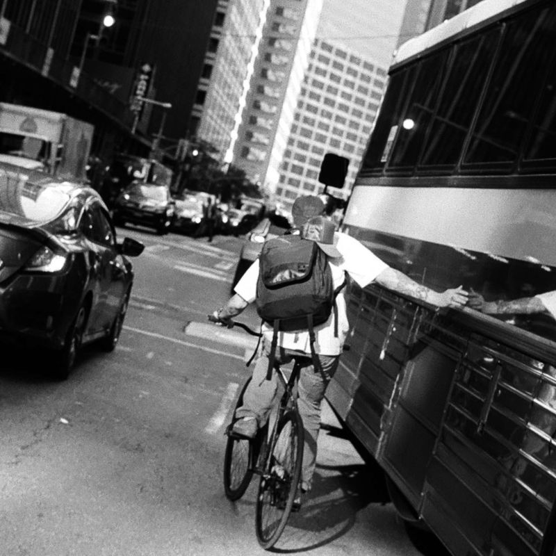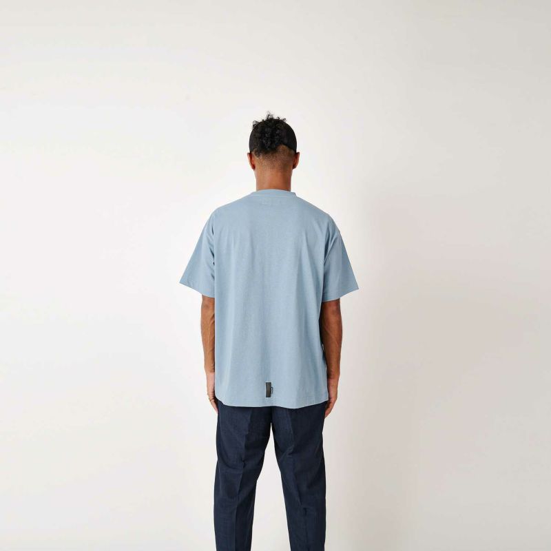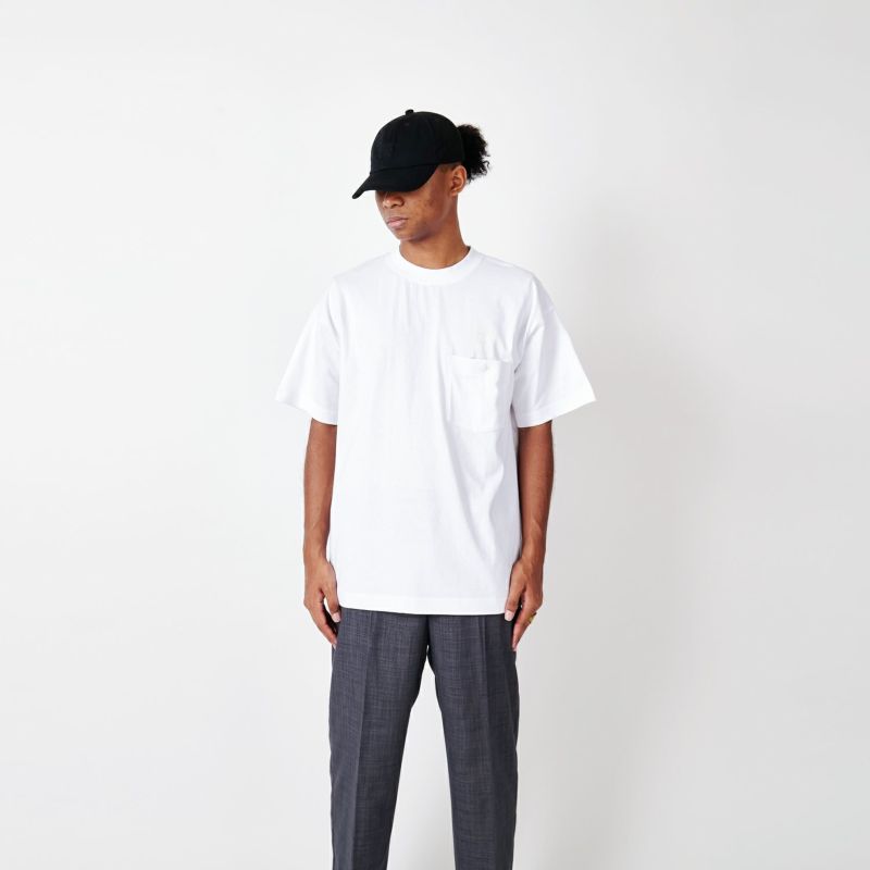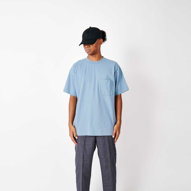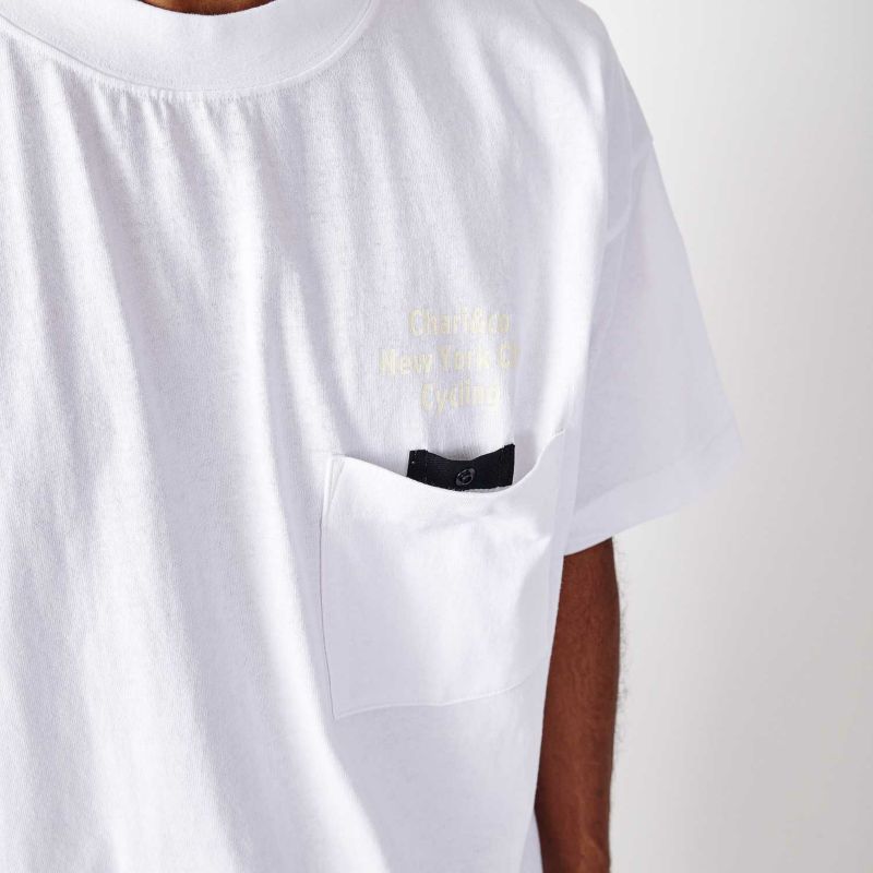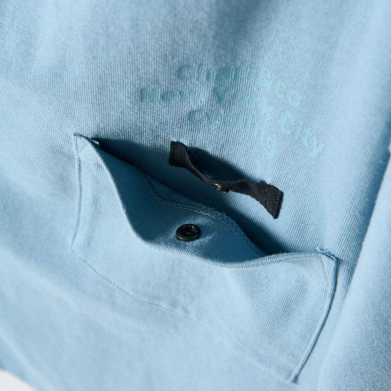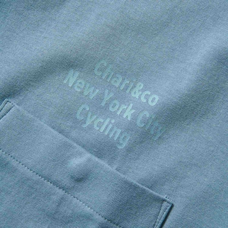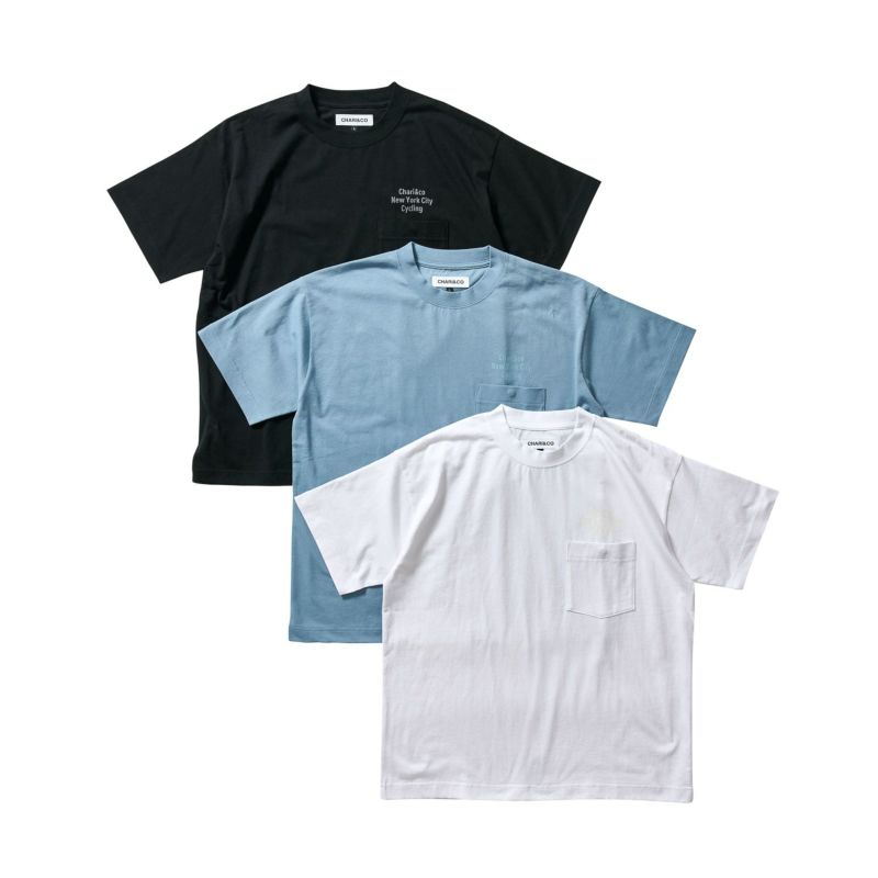 ニューヨークで初めて自転車に乗った時に感じたこと。飽きのこない街の風景の移り変わりや心地よい風、イーストリバー沿いからマンハッタンの南に位置するバッテリーパークを経てハドソンリバー沿いを北上。永遠に走れそうな気がした。胸ポケットにはTシャツには珍しい落下を防ぐための片手で締めることができるフィンガースロットボタン機能を搭載。身幅をしっかり確保し着丈を少し短くすることで16年前のブランドスタート時からあったストリート感ある野暮ったさを一新し、現在のモダンさを優先。長期的な着用を想定して開発したオリジナルカスタムボディ。16/-のオープンエンド糸を使用しているため、ドライでガシッとした着心地の良い、アメリカンコットンライクに仕上がっている。