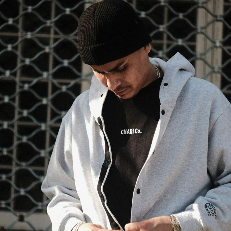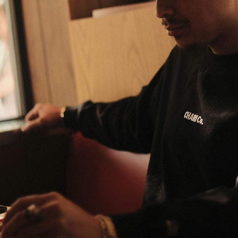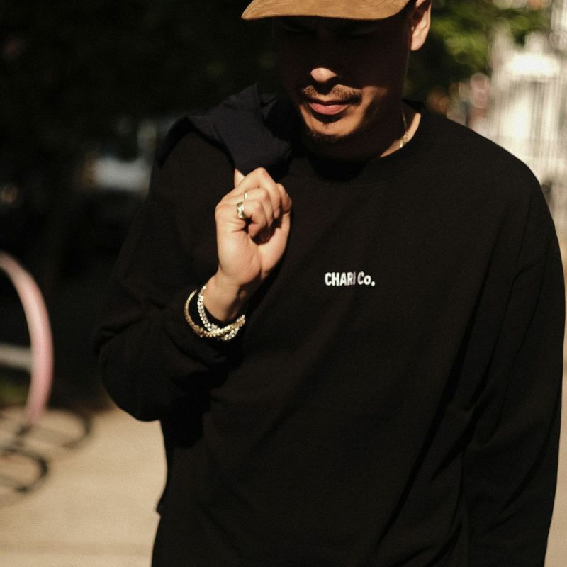 自分たちが言い出したわけでもなくブランドスタート間もなく、チャリアンドコーをチャリコと言われるようになった。&を省略されたわけだがそれはそれで響きが良い。Simple is the Best的なロゴで見る人を魅了する。左袖には簡略化した可愛いアメリカ国旗刺繍。背中側裾にはニューヨークの自転車屋から始まったブランドスピリッツを感じることができるリフレクターテープがファンの安全を守る。長期的な着用を想定して開発したオリジナルカスタムボディ。16/-のオープンエンド糸を使用しているためドライでガシッとした着心地の良い、アメリカンコットンライクに仕上がっている。首元のフライスには5%ポリウレタンを入れることで程よいテンションを実現し首通しを最適化した。