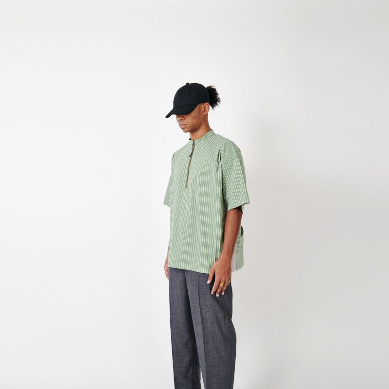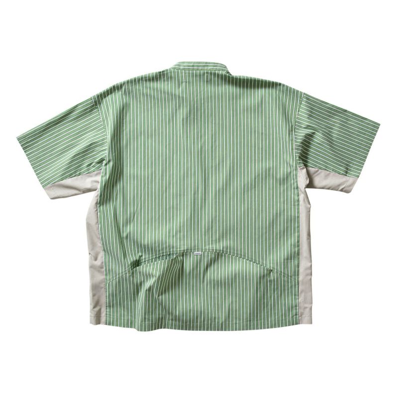 サイクリングジャージの様なシャツ。なのでこれはサイクリングジャージではなくシャツ。しかし脇下の通気性の高い生地の切り返しやフロントが大きく開閉できるファスナー。さらには背面の腰部分に装着された大きなポケットはほぼほぼサイクリングジャージと言ってもよい。大きなポケットには手袋やライトアウターなどを入れる想定だ。