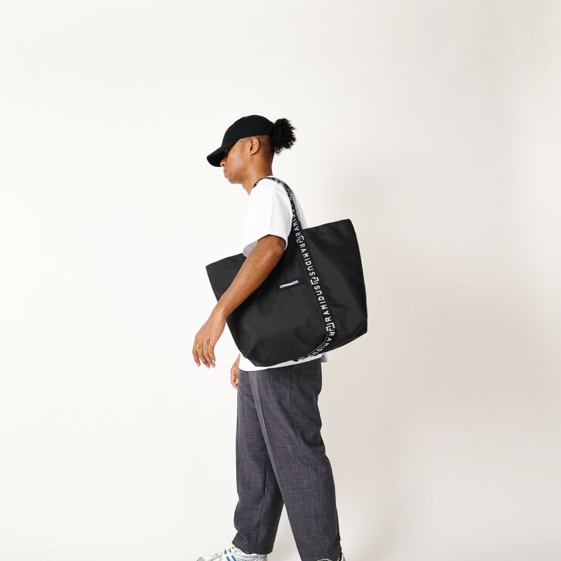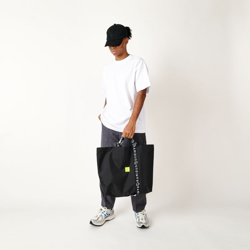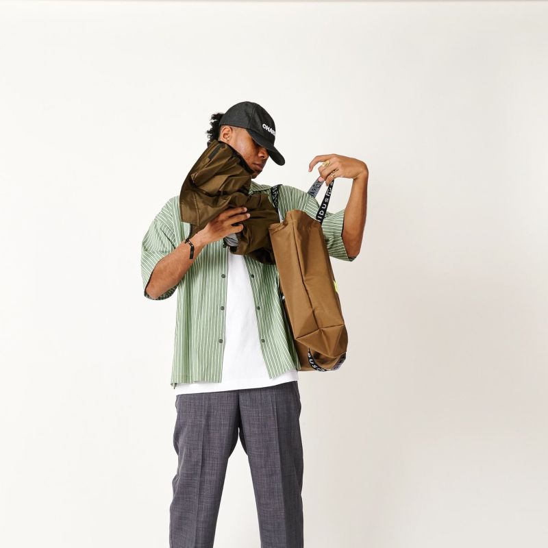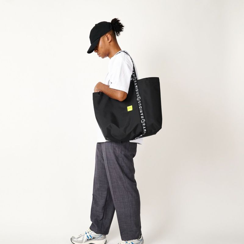 ストリートファッション発祥の地、原宿から次の時代のスタンダードを発信するバッグブランドRAMIDUS。毎日使えるバッグを20年以上追い求めてきたその姿勢と歴史に敬意を払い共同制作。RAMIDUSのアイコンであるトートバッグにCHARI&COらしくユニークな両面表という発想で2種類のネームをつけ、内装には軍ものからヒントを得たタイベック生地のネームタグが装備されている。また落下を防止するためのフィンガースロットボタンにより片手で開口部を締めることが出来る。