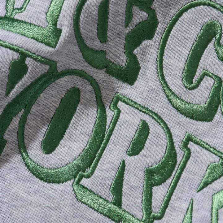 アーチ状のロゴをアメリカ紙幣の色で刺繍。物の落下を防止するファスナー付きポケット。ドライでガシッとしたタッチ感に仕上げたブランドオリジナルボディー。