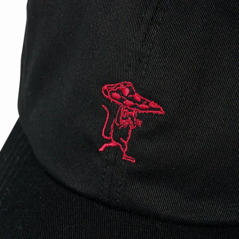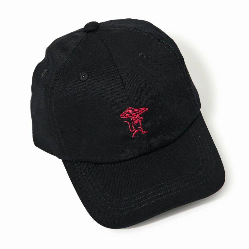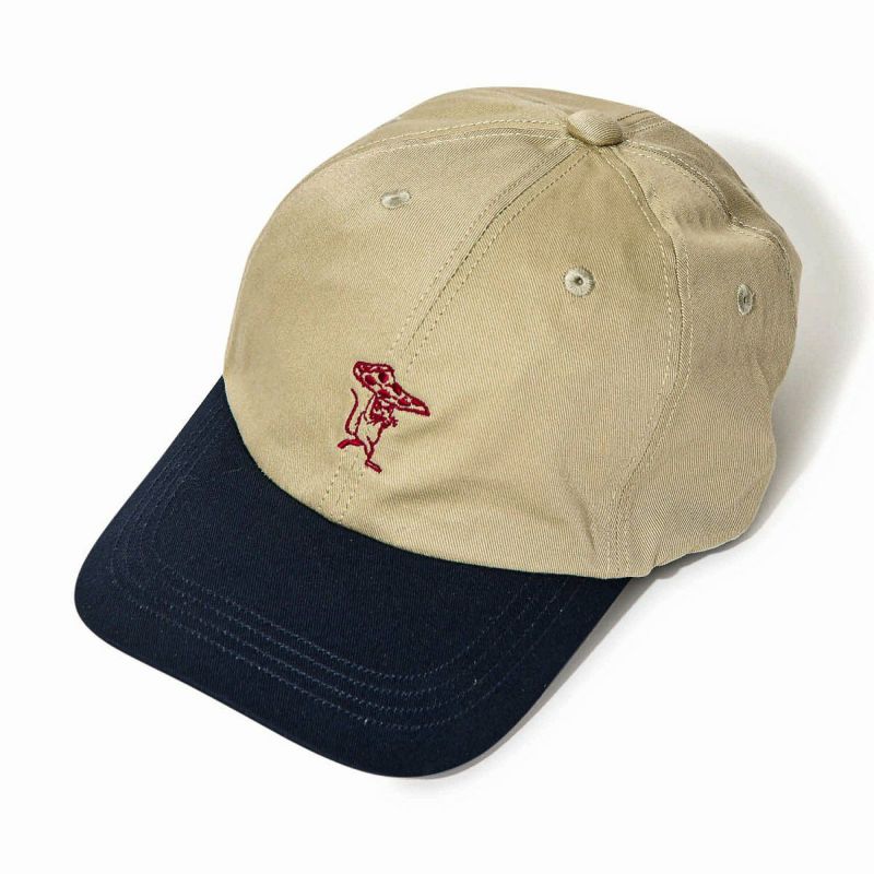 NYの地下鉄の風物詩、ネズミがピザを運んでいる姿をコミカルに描きながらも、刺繍で高級感を持たせたシンプルなCAP。