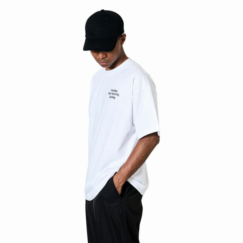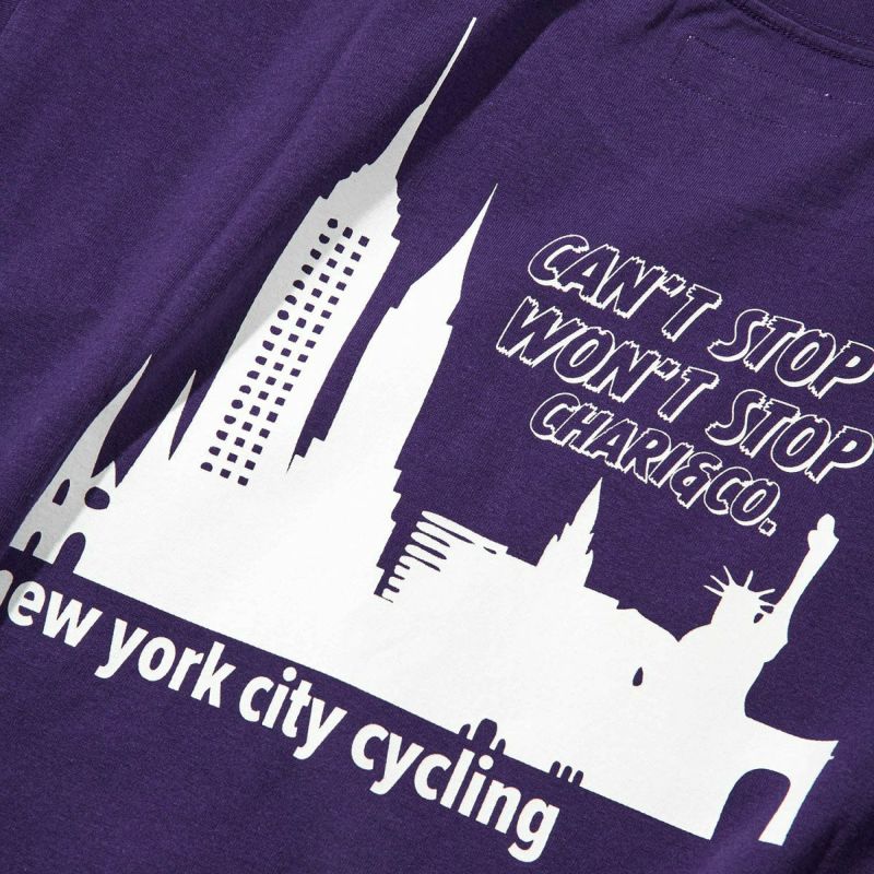 早いだけが自転車ではない。ニューヨークという多様な文化が織り混ざった街並みをゆっくり走ることも醍醐味だ。アメリカの銀行がスポンサーしてそうなバイクレースをイメージ。背中側裾にはニューヨークの自転車屋から始まったブランドスピリッツを感じることができるリフレクターテープがファンの安全を守る。長期的な着用を想定して開発したオリジナルカスタムボディ。16/-のオープンエンド糸を使用しているためドライでガシッとした着心地の良い、アメリカンコットンライクに仕上がっている。首元のフライスには5%ポリウレタンを入れることで程よいテンションを実現し首通しを最適化した。