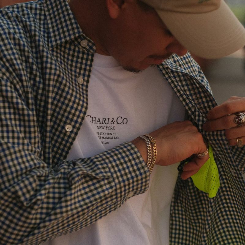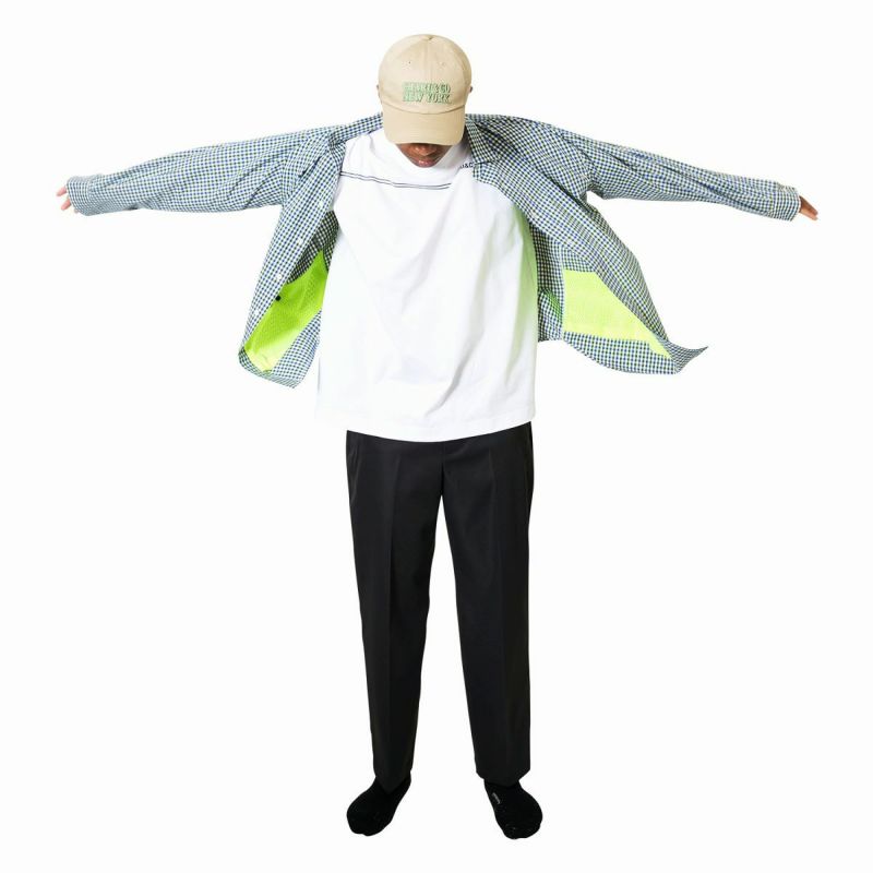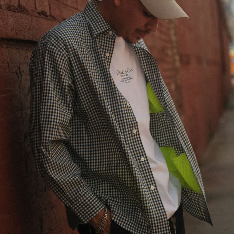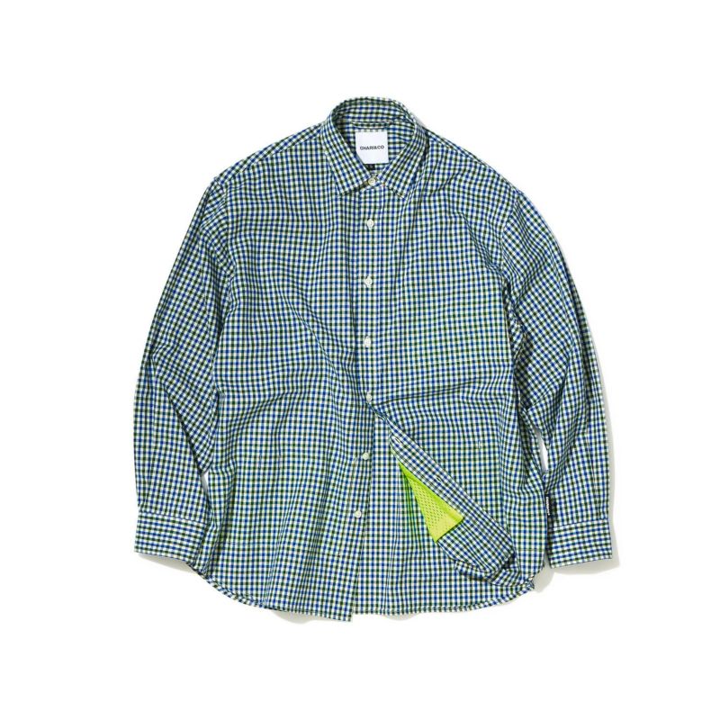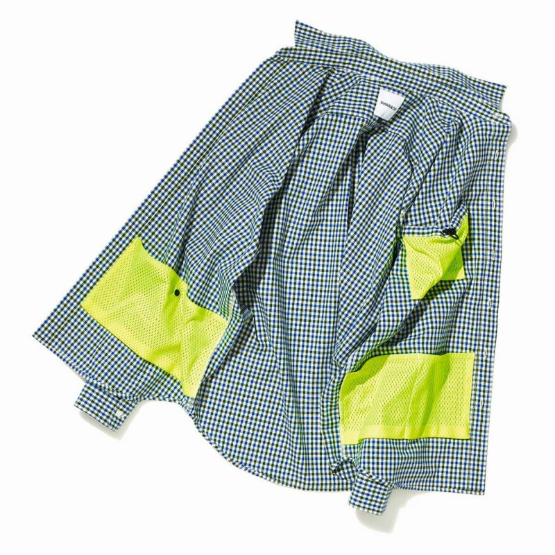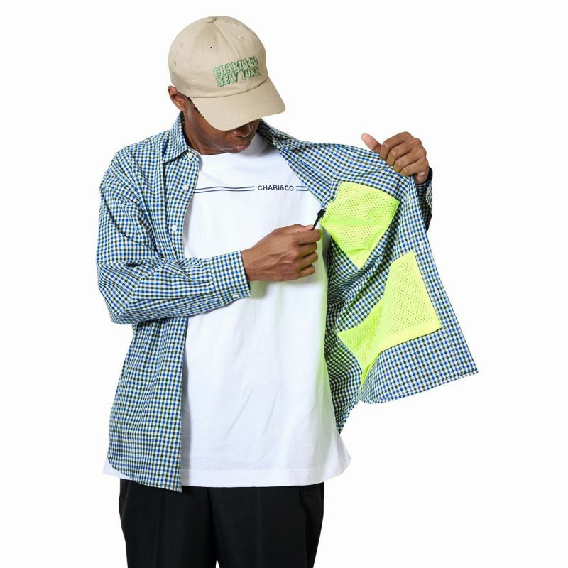 適度な肉厚感、ソリッドなFlannel柄シャツで汎用性が非常に高い。NYの自転車屋からスタートした CHARI&CO としては身軽に自転車に乗りたい。その発想から内側には収納可能なメッシュポケットをバランスよく配置。夜間でも視認性の高い蛍光メッシュだ。着やすいシンプルなデザインながらも小さな携行品、ライトアウター等をオーガナイズして運ぶことが出来る。ワイドな型でスウェットの上に羽織ってもスタイリングが決まるのであらゆるシーンで活用して頂きたい。