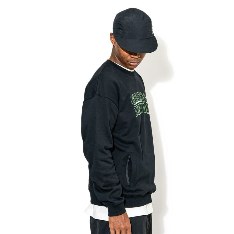 アーチ状のロゴをアメリカ紙幣の色で刺繍。物の落下を防止するファスナー付きポケット。ドライでガシッとしたタッチ感に仕上げたブランドオリジナルボディー。