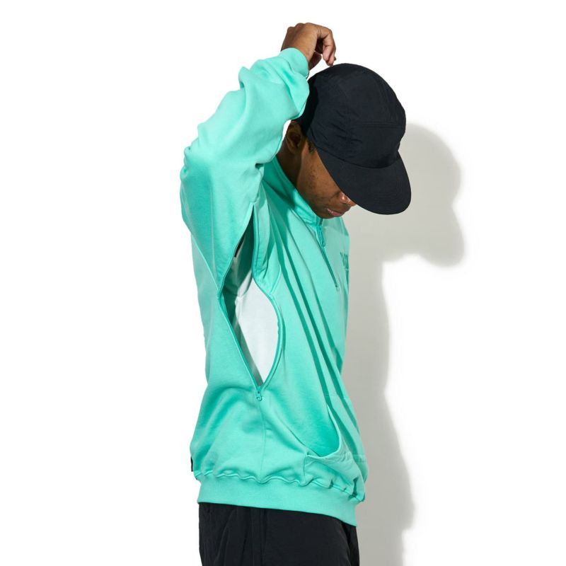 アップデートを続けるCHARI&COのガーメンツ。快適な着心地は背中の換気が特に重要と考えるため、背中のラッセルメッシュで通気性を確保。脇下ベンチレーションが更に換気させる。襟があるのでゴルフや少しフォーマルなシチュエーションでも着こなして欲しい。フロントポケットは内側から絞ることができ自転車に乗る時のバタ付きや、ゴルフスウィングに必要なお腹前の空間作りに役立つ。ドライでガシッとしたタッチ感に仕上げたブランドオリジナルボディー。