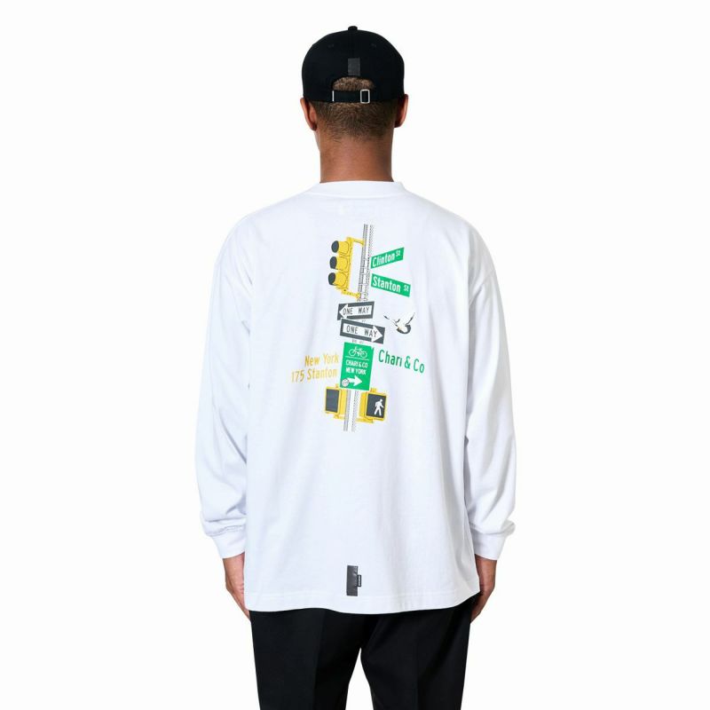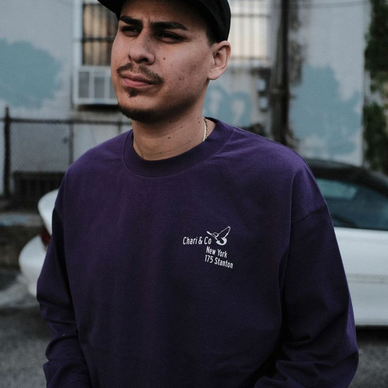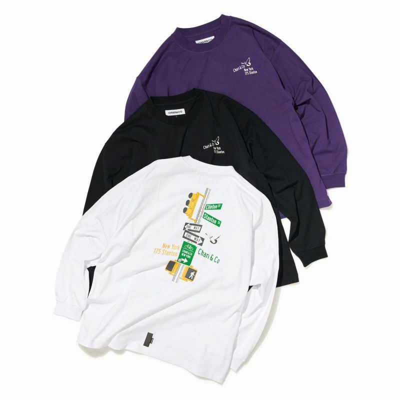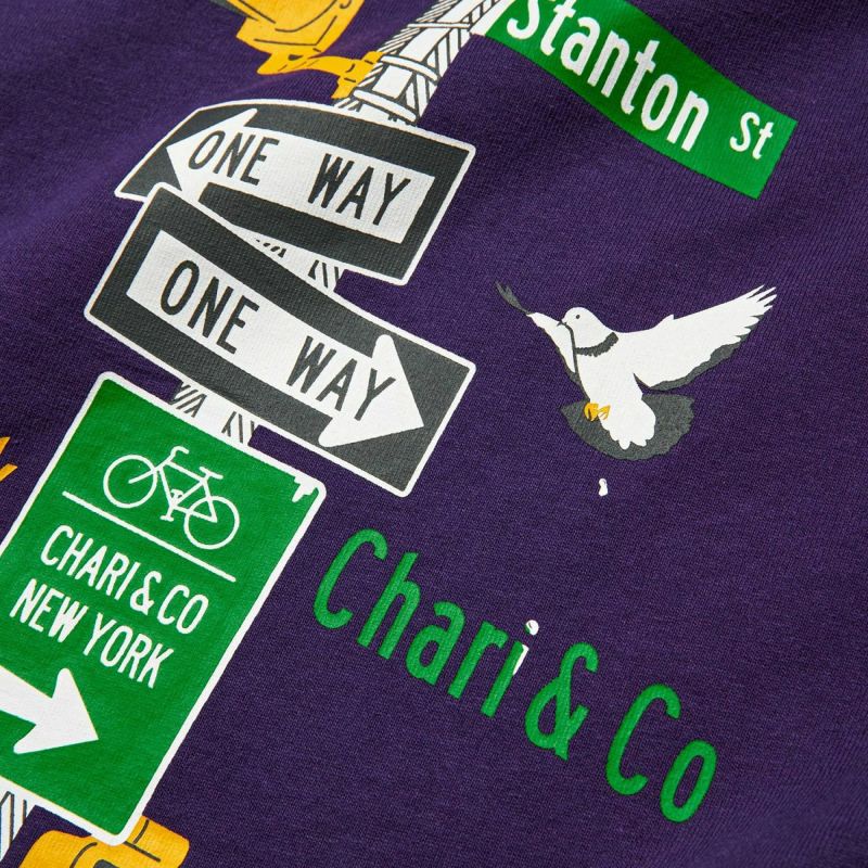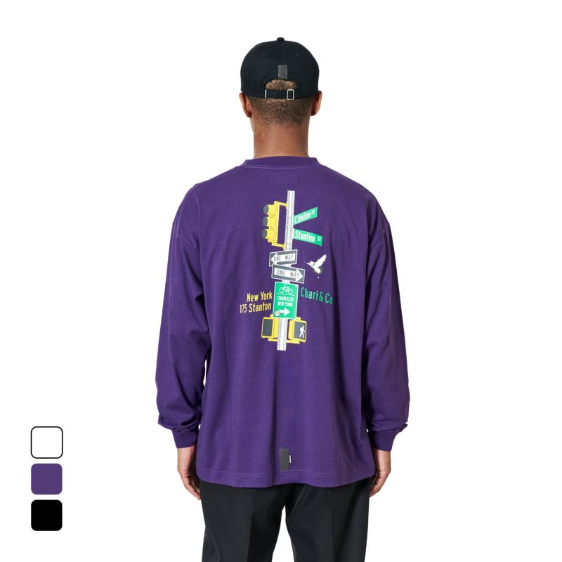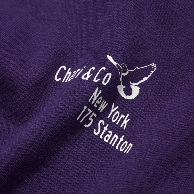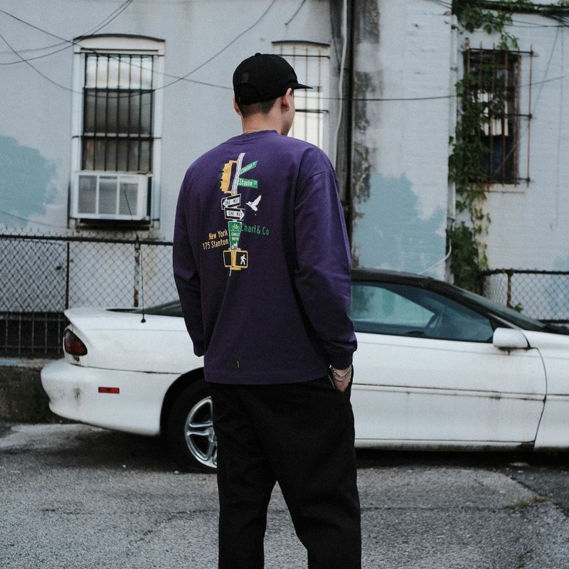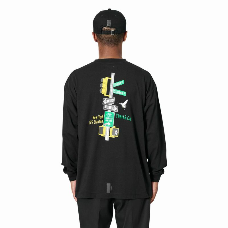 CHARI&CO NYC STORE が位置したローワーイーストサイドのハート部分。スタントンst.とクリントンst.の交差点にある標識。ハトが糞を落としているあたりがリアル。ショップオープン当時銃撃戦もあった危険なエリアだ。背中側裾にはニューヨークの自転車屋から始まったブランドスピリッツを感じることができるリフレクターテープがファンの安全を守る。長期的な着用を想定して開発したオリジナルカスタムボディ。16/-のオープンエンド糸を使用しているためドライでガシッとした着心地の良い、アメリカンコットンライクに仕上がっている。首元のフライスには5%ポリウレタンを入れることで程よいテンションを実現し首通しを最適化した。