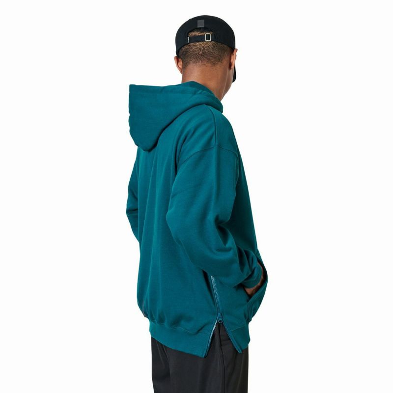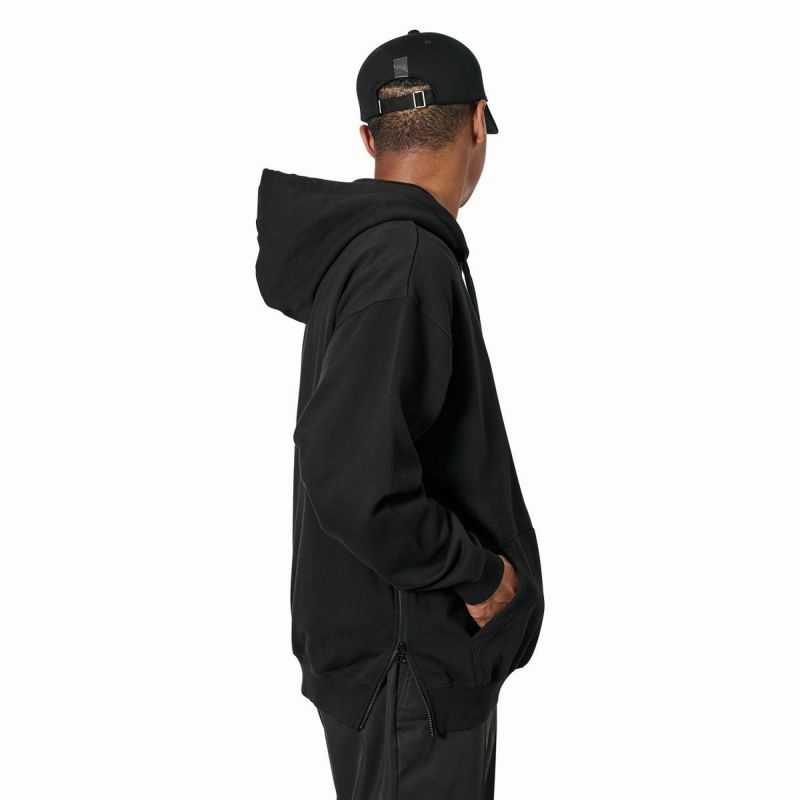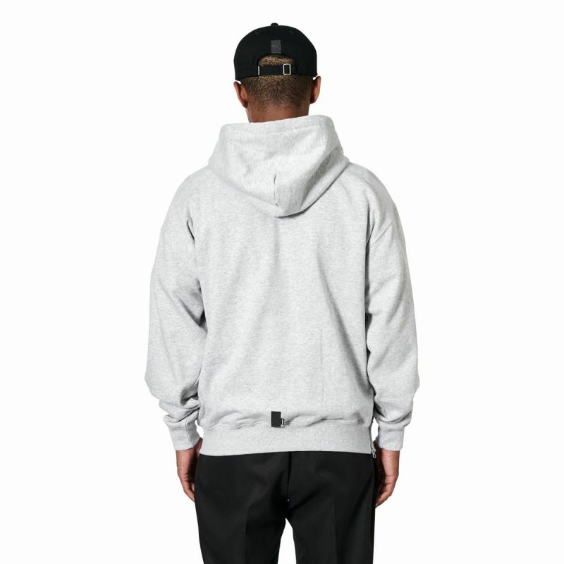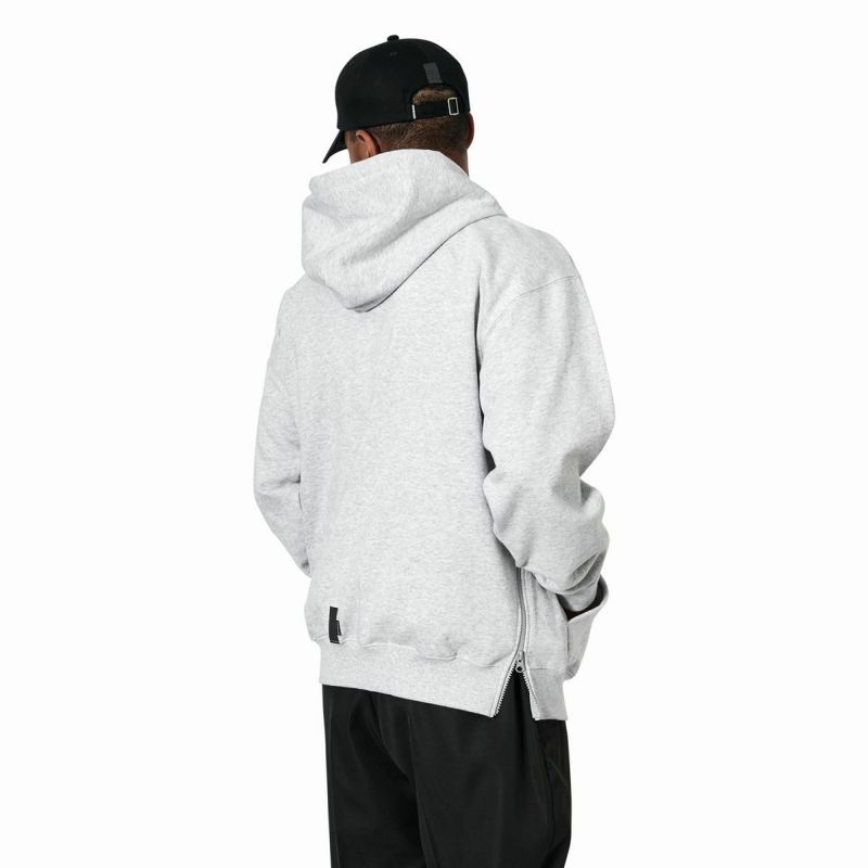 以前のシーズンから使用しているアリーナロゴを最高の大きさ、最高の位置でスウェットに刺繍。サイドシームのファスナーは脱着のストレスを軽減させてくれる。コンテンポラリーなシルエットで裏毛は通年で使える10.6oz。起毛させる一歩手前の“半掻き"に設定することで絶妙な生地の硬さと肉厚を表現した。NY STORE開業以来継続している安全を考慮したブランドスピリッツであるリフレクターテープが後ろの裾に縫われている。