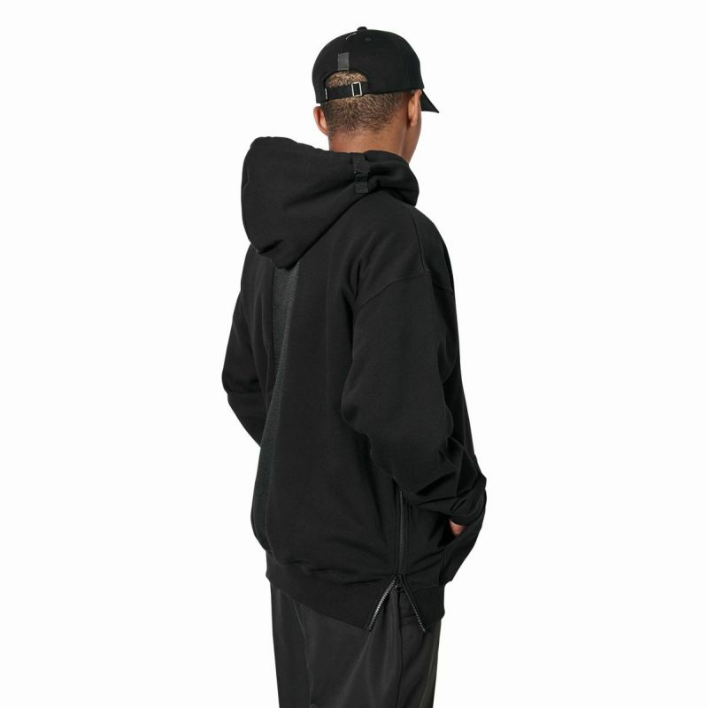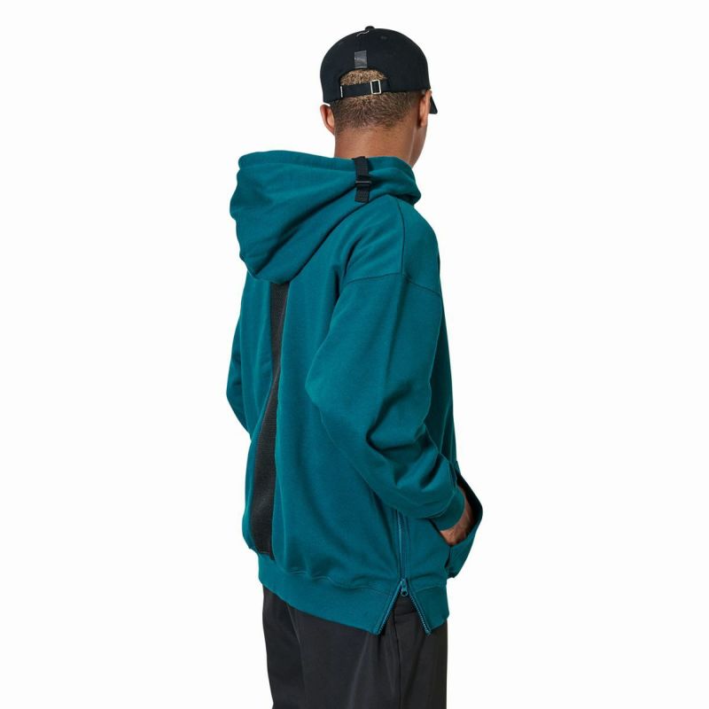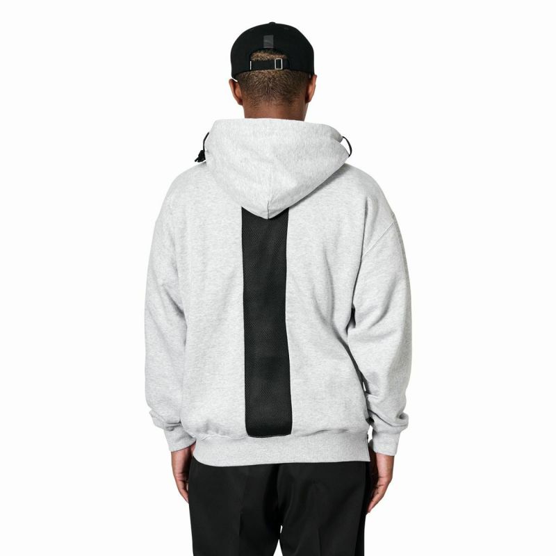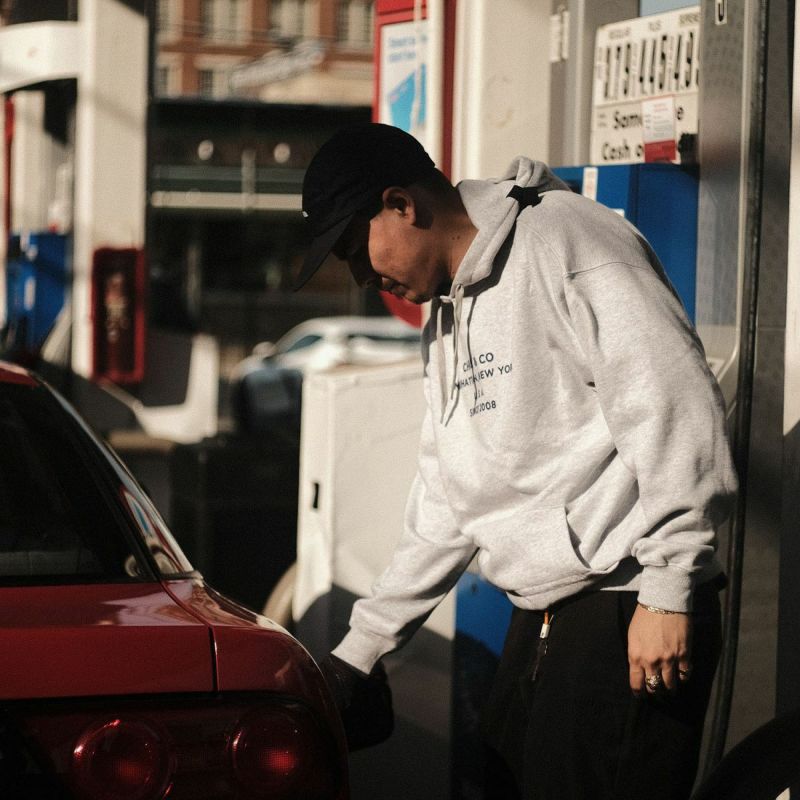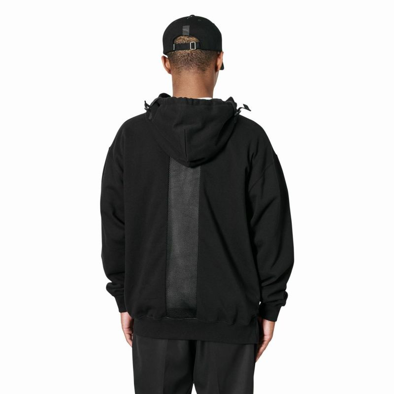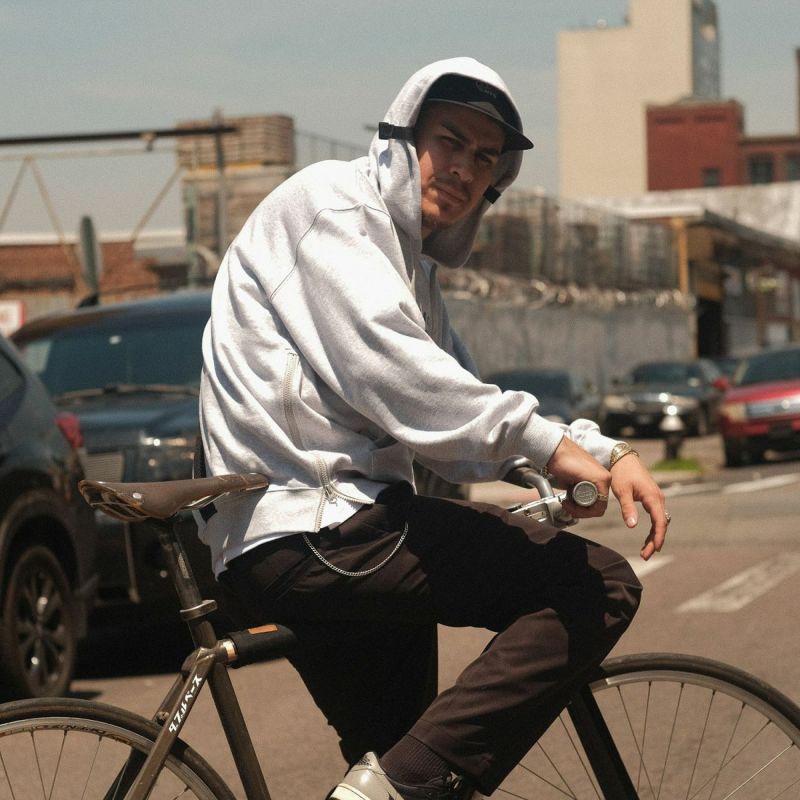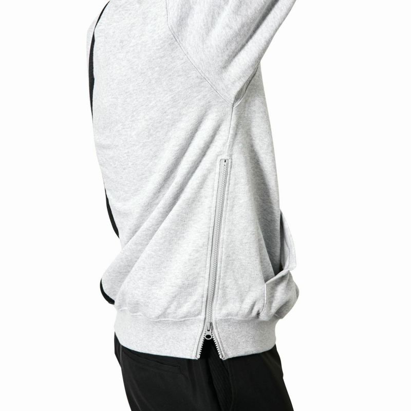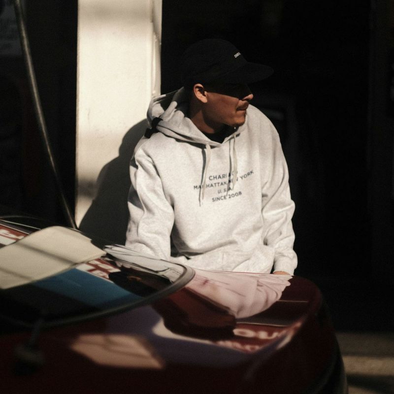 以前シーズンから使われているロケーションロゴを裏毛にフロッキープリントするオルタナティブな装い。フード横のストラップはフードを被った自転車走行時等にも片手で引くことができ、背後の確認をするための視界を確保する。サイドシームのファスナーは脱着のストレスを軽減させてくれる。背中のラッセルベンチレーションは移動など身体を動かすとあつくなるのを防ぎ一度着るとそのありがたさを噛み締めることになる。カンガルーポケット内側がスピンドルにより絞れるナローダウンシステムは物の落下を防いだり風によるバタ付きを抑えたり、更にはコーディネートの幅を広げることも出来る。コンテンポラリーなシルエットで裏毛は通年で使える10.6oz。起毛させる一歩手前の“半掻き"に設定することで絶妙な生地の硬さと肉厚を表現した。