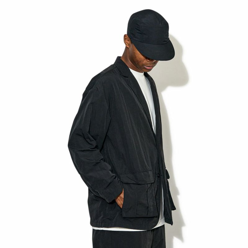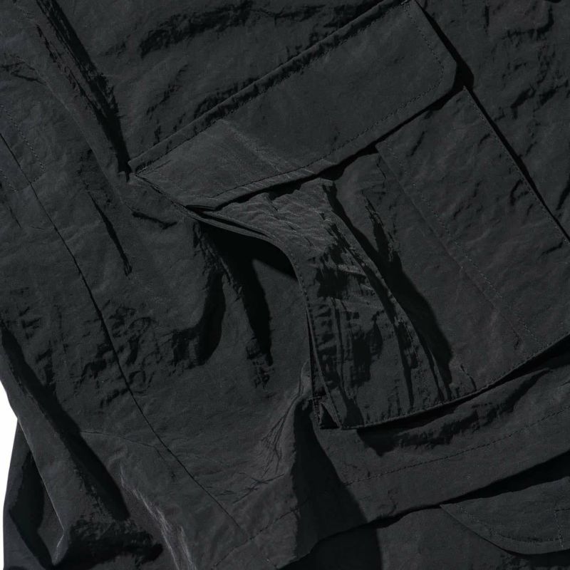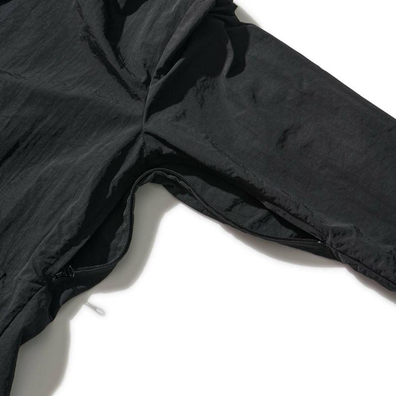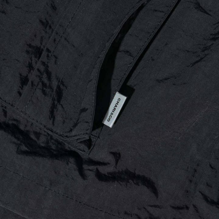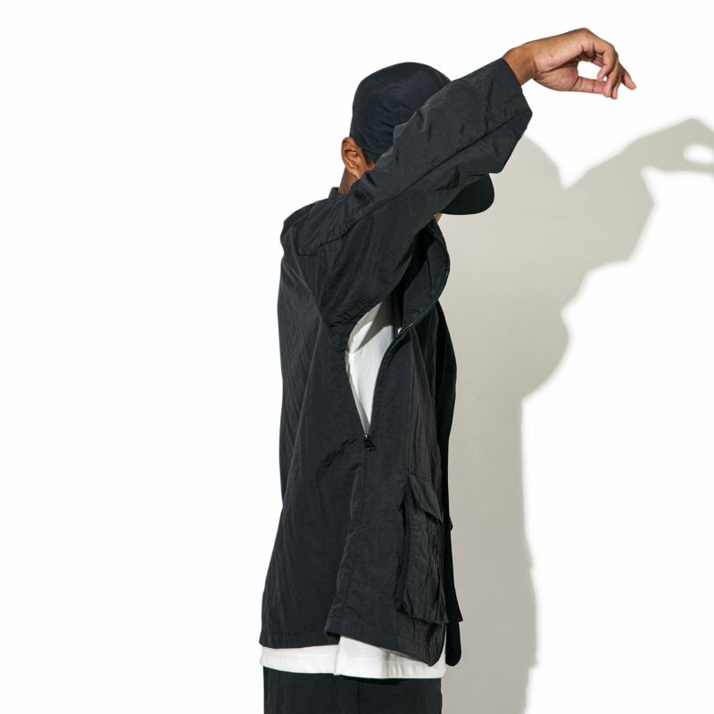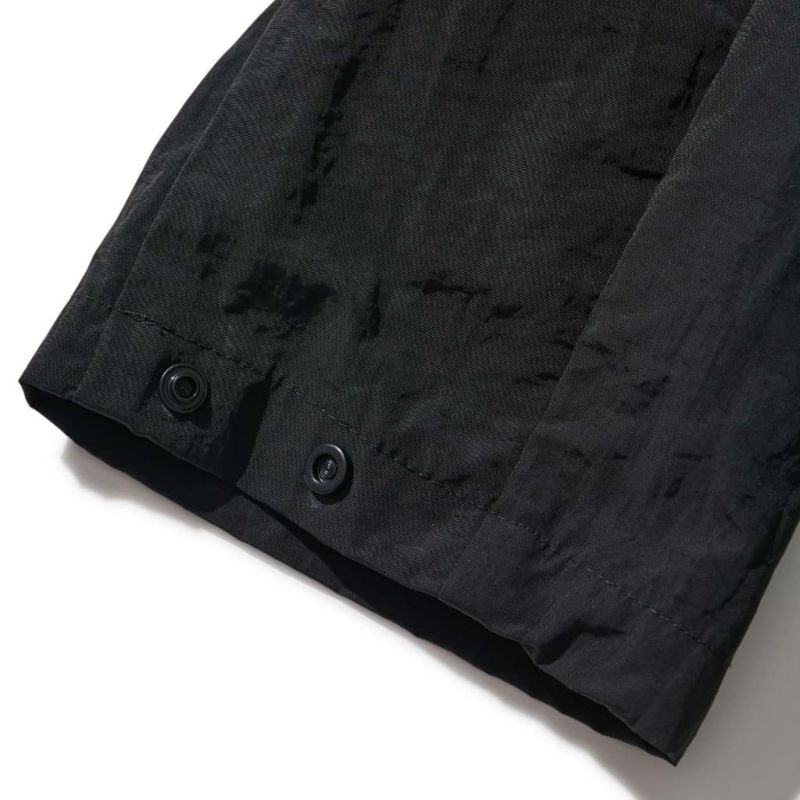 袖にはスナップボタンが付き調整可能。ハリの強いナイロン生地で安心感ある着心地。