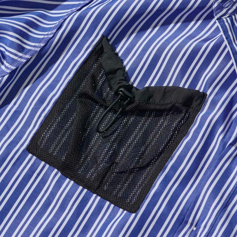 大きく羽織れる形と着やすいシンプルなデザインに拘りながらも、内側には収納可能なメッシュポケットをバランスよく配置。