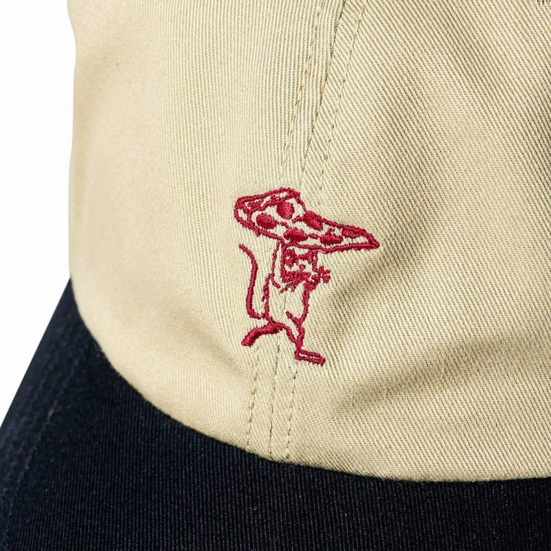 NYの地下鉄の風物詩、ネズミがピザを運んでいる姿をコミカルに描きながらも、刺繍で高級感を持たせたシンプルなCAP。