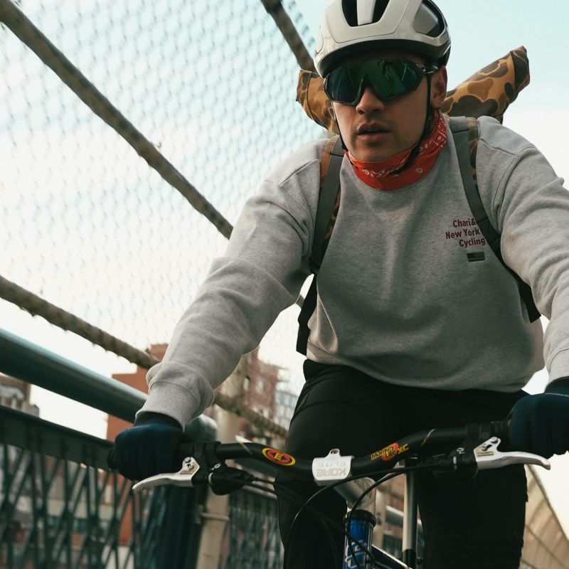 早いだけが自転車ではない。ニューヨークという多様な文化が織り混ざった街並みをゆっくり走ることも醍醐味だ。シルエットはコンテンポラリーな型で裏毛は通年で使える10.6oz。起毛させる一歩手前の“半掻き"に設定することでアツくなりすぎない絶妙な生地の硬さと肉厚を表現した。