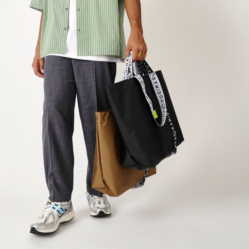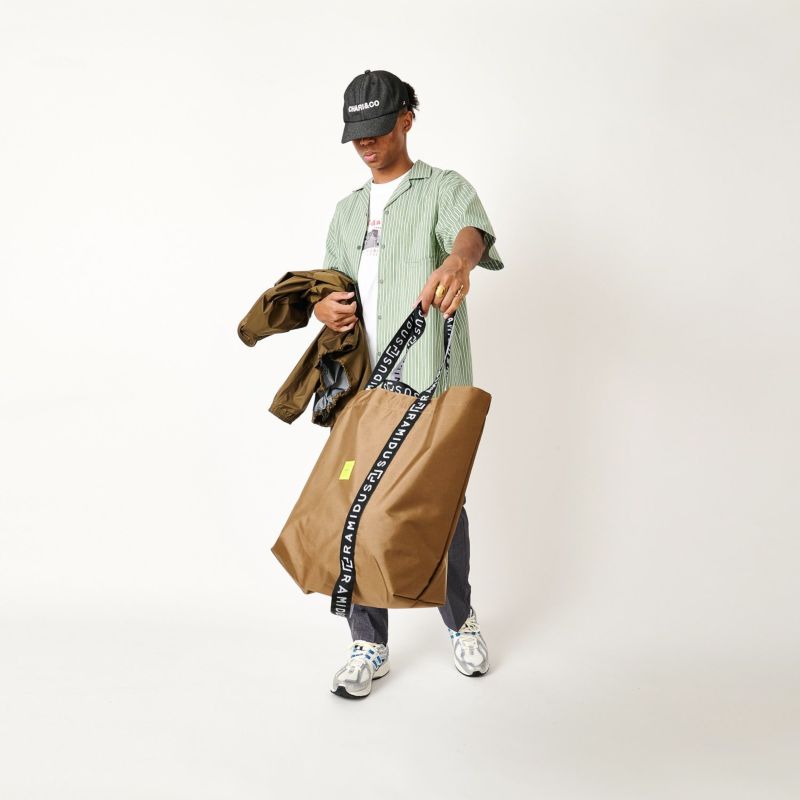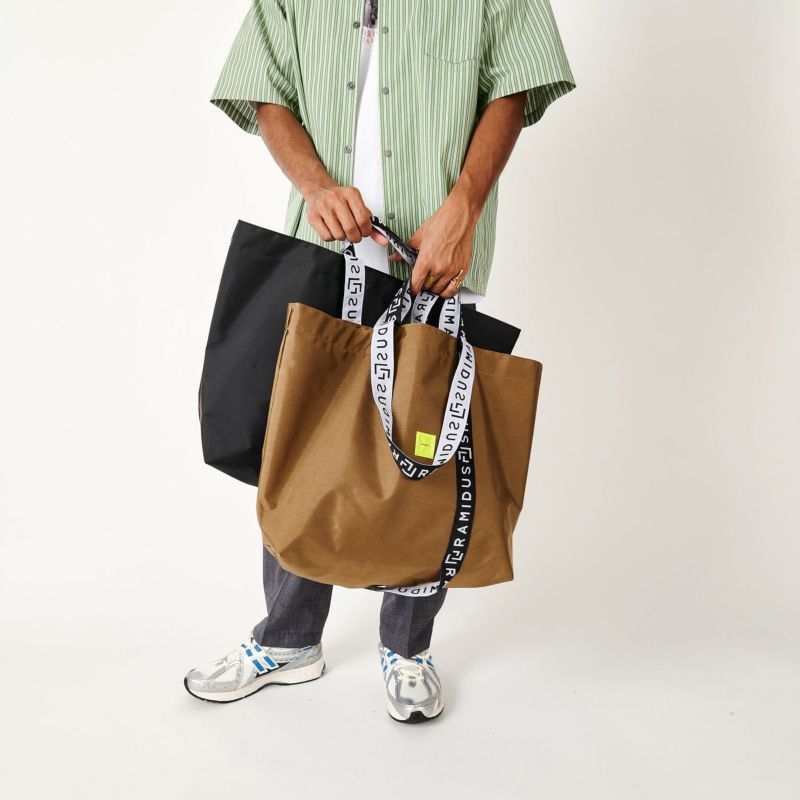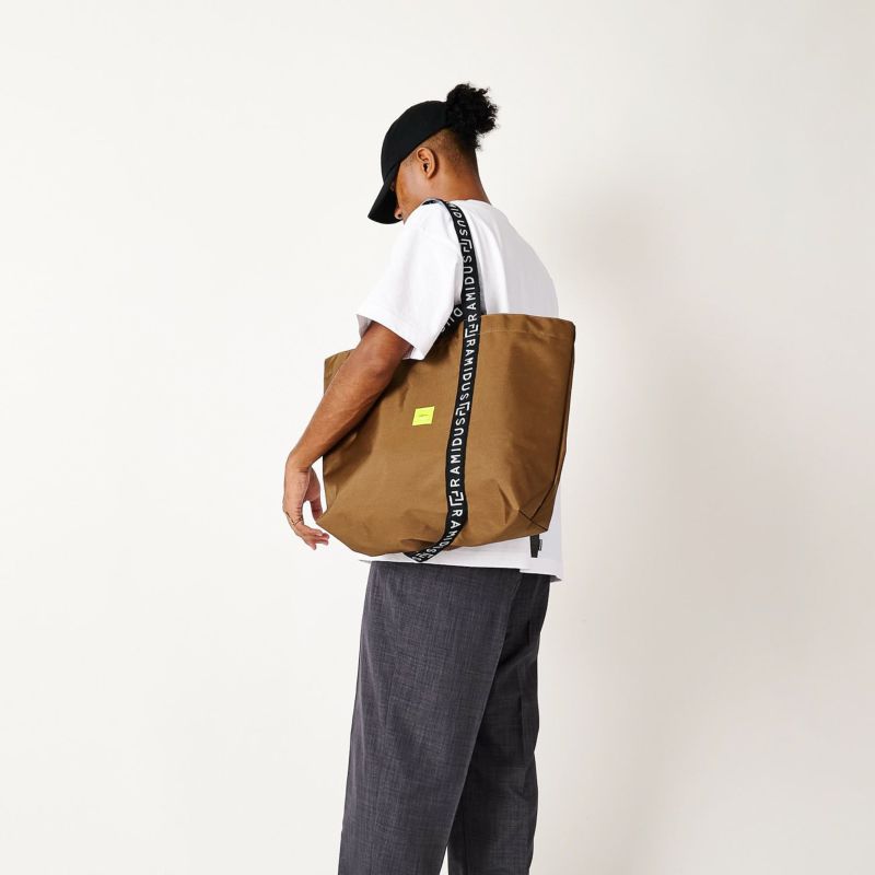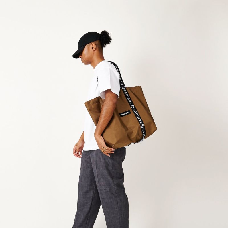 ストリートファッション発祥の地、原宿から次の時代のスタンダードを発信するバッグブランドRAMIDUS。毎日使えるバッグを20年以上追い求めてきたその姿勢と歴史に敬意を払い共同制作。RAMIDUSのアイコンであるトートバッグにCHARI&COらしくユニークな両面表という発想で2種類のネームをつけ、内装には軍ものからヒントを得たタイベック生地のネームタグが装備されている。また落下を防止するためのフィンガースロットボタンにより片手で開口部を締めることが出来る。