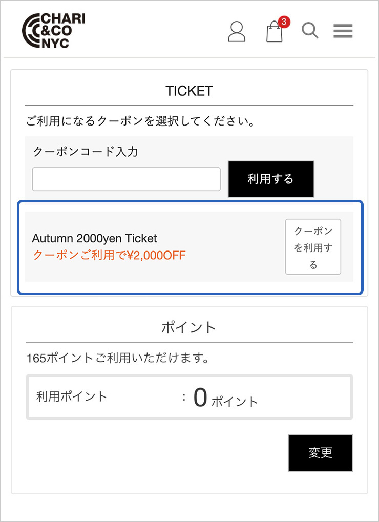 手順.1 ご注文手続きページに利用可能な クーポンが表示されますので、 「クーポンを利用する」をタップします。